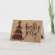 Red, Black Plaid Burlap holly jolly Card with Tree