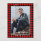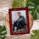 Unique and trendy congratulations graduate announcement and celebration party invitation card, with a simple classic rustic red and black coloured buffalo lumberjack plaid tartan pattern background. With room to customise or personalise with a photo, the name of the graduate, class graduation year, high school, future college or university name, and celebration party event information. Let the family, friends and neighbours know there is a happy graduate ready to conquer the world, and invite everybody to come celebrate the happy event with you!