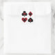 A sheet of stickers featuring a modern design that consists of the classic four french playing card suits (black clubs, red diamonds, red hearts & black spades) on a white background.