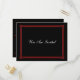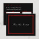 This black and red wedding response postcard has a vintage, old fashioned feel with old-timey letter design, including elaborate script elements, a decorative banner, stars and a swirly ampersand. The fancy invitation is inspired by both vintage design and stylish posters. The text reads: "Répondez S'il Vous Plaît" on the front and "The Favour of a Reply is Requested by" followed by your personal text on the back.