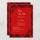 This wedding safe the date invitation card comes in different sizes, shapes and papers. It is customisable with your Intro, names and or monograms, occasion, date, address. It shows a harmonious blend of scottish red black pattern and it has fitting red + burgundy tones and white typography The minimal light red overlay is for your customisation and on the backside a burgundy overlay for your monograms. Hobinishop