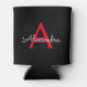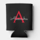 Red Black Script Girly Monogram Name Can Cooler