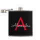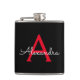 Red Black Script Girly Monogram Name Hip Flask