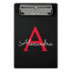 Red Black Script Girly Monogram Name Mini Clipboard