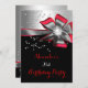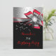 Red Black Silver Bow Pearl Birthday Party Invitation