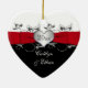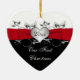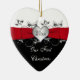 This romantic ceramic heart shaped red, white, black and silver floral Our First Christmas keepsake ornament has a PRINTED red ribbon and bow with a silver PRINTED heart on it with the year on it. It would make a lovely keepsake for the newlyweds, or as a wedding favour, or customise the text and use it for a gift for your wedding attendants. If you need help customising it, please email niteowlstudio@gmail.com.