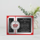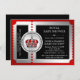 Red, black and silver royal prince baby shower invitation with elegant red and silver jewel crown on a beautiful red, black and silver ticket style background. This red, black and silver prince baby shower invitation is easily customised for your event by simply adding your details in the font style and colour, wording and layout of your choice.