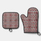 Red Black Taupe Beige Grey Tribal Art Pattern Oven Mitt & Pot Holder Set