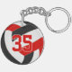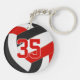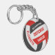 This team colours volleyball themed keychain for girls or boys features a realistic looking red, black and white volleyball upon which you can customise the player's name, jersey number and court position, plus school or club name and mascot name in a varsity letter style font - by katz_d_zynes