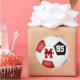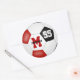 These team colours soccer 3 inch round stickers for a boy or girl feature a simple soccer ball graphic with red, black and white panels - customise with the athlete's name, monogram and jersey number - by katz_d_zynes