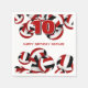 These volleyball themed birthday party napkins are fully customisable and feature clusters of red, black and white volleyballs at the top and bottom edges - personalise with your custom text - by katz_d_zynes