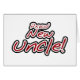Proud New Uncle cards, tote bags, keychains, T-shirts, mugs, and more with red text edged in black.