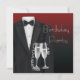 Elegant black tuxedo party invitation template. This classy black and red party invitation features a black tuxedo and pair of champagne glasses and is easily customised for your event by simply choosing the "Customise it!" button to begin adding your event details, font style, font size & colour, and wording. Please note - all of the card and invitation designs you will find on Zazzle are printed graphics with no actual jewels, bows, raised, embossed, or added parts or pieces.