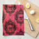 Red & Black Victorian Skulls Pattern Halloween Tea Towel