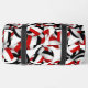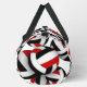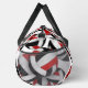 This cool volleyball player's duffle bag features a random pattern of varied size red, black & white volleyballs turned every which way on a white background - customise with the athlete's name & jersey number - by katz_d_zynes