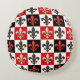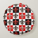 Red Black White Chequered Fleur-de-lis Design Round Cushion