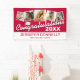 Personalised graduate school colours party banner featuring a red background that can be changed to any colour, 5 photos of the student, a graduation cap, and a congratulations template that is easy to personalise.