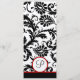 Red Black White Damask Monogram Wedding or Special Occasion Menu Card.