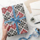 Stylish geometric gift wrapping paper featuring a bold red, black, and white folk-inspired pattern. Perfect for Christmas, birthdays, weddings, or any special occasion. This unique ethnic design adds a modern twist to traditional motifs, making your presents stand out with elegance and charm. Ideal for those who love minimalism, Scandinavian style, and eye-catching patterns.