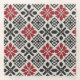 Red Black White Geometric Keffiyeh Folk Pattern Glass Coaster