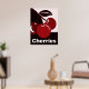 The poster showing red cherries is a classy red kitchen wall decor idea. The cherries, in triplet formation, have a caption in white lettering. By exchanging the background color, the general hue reflects in darker shades and lighter shades. Personalize the caption text, the font, and the font color. For help with customization and custom designs, please contact us https://kbmd3signs.com/contact/.