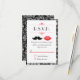 Red, Black & White Moustache & Lips Damask RSVP Card