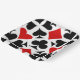 Set of four card suit icons red, black and white colourful pattern. These casino Paper Plates are perfect for anyone who enjoys card games like poker, bridge or blackjack. A fun gift for friend, coworkers or family on Christmas or Birthdays, and any gift-giving occasions!