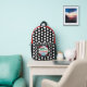 Fun motivational sayings in colorfiul typography Be Happy, Love, Smile, Do Your Best, etc. against solid white background inside red black outlined circle and square. Classic black background with geometric white polka dots pattern. Solid black lower sides and bottom. Solid red colour top area. Original Design © TamiraZDesigns.