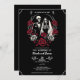Red & Black White Roses Skeleton Couple Wedding Invitation