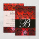 RED BLACK WHITE RUBY DAMASK MONOGRAM RSVP CARD