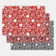Red, Black & White Star & Snowflake Pattern Wrapping Paper Sheet