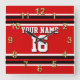 Red Black White Team Jersey Custom Number Name Square Wall Clock