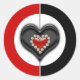 Celebrate the 14th February with this romantic envelope or gift seal featuring a red heart edged with fake diamonds / rhinestone gems on top of a black one framed by white, red and black border.