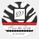 RED BLACK WHITE ZEBRA FUR MONOGRAM ,Save The Date Classic Round Sticker