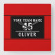 Red Black with Team Name Number Square Wall Clock. Personalised clock with the team name, team number and player`s name. The text is in trendy white colour on a black background.