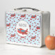 Red & Blue Aeroplane Pattern Custom Name Metal Lunch Box
