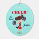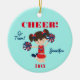 Red, White, Blue and Aqua Cheer Cheerleader Christmas Ornament. Easy to personalise with your name, date and mascot name. Visit our shop to view this ornament in a variety of school colour options. This ornament is a sweet holiday gift for the cheerleader in your life!