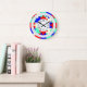 The design is sleek, vibrant, and elegant, featuring Roman numerals displayed on colourful jigsaw puzzle pieces in vivid red, deep blue, teal, light yellow, and off-white hues. These Roman numerals function as the clock's hour markers, complemented by minute dash marks for enhanced detail.