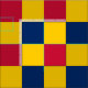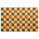 Red, blue and yellow chequerboard pattern fabric