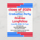 Send this Red & Blue Bars Graduation Party Invitation Postcard to your family and friends. Personalise with your graduate's name, class year, and party details. These red and blue school colours invites are a stylish way to show off your school spirit.