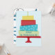 This adorable Red & Blue Birthday Cake Invitation is perfect for any birthday party announcement. A birthday cake on a red stand with tiers of blue, red, yellow, and cream colours.