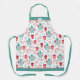 This cute kitchen apron features a blue, red, pink, and white pattern of boho style coffee pots, cups, sugar jars and spoons, as well as flower and berry images. At the top and bottom are matching solid blue borders, with your monogram in blue on a circle banner at the top. Pretty, and personalised, too.