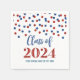 Customisable graduation napkins for class of 2024 with red white and blue confetti pattern.