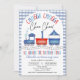 Red Blue Gingham Chugga Chugga Train 1st Birthday Invitation