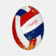 This cute volleyball ornament features the realistic image of a volleyball that has red, blue & white panels and a sprinkling of tiny faux gold glitter stars, upon which you can customise the player's name on the front and commemorative year on the back - by katz_d_zynes
