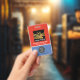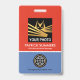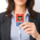 A red and blue column box design accentuated by a simple white demarcation line. The red column at the top houses your prestigious name and job title. Above this, is a photo template option with photo dimensions of 1,000 x 1,000 pix. In the blue layer below lies a global logo you can use with its organisation name underneath.