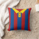 Easy to edit football shirt / soccer / rugby style sports jersey design throw pillow. This design has red and blue vertical stripes, with yellow trim and buttoned collar design.