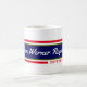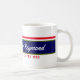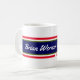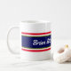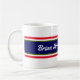 A modern and personalised design idea for a mug, with red and blue horizontal stripes and name (cool handwritten font style)