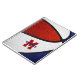 This sporty basketball themed spiral notebook features the image of a realistic, abstractly oversized basketball with alternating red, white and blue recolored panels - athlete's name and monogram, varsity letter, or jersey number are customisable on the front cover - by katz_d_zynes