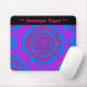 Custom mouse pad with red lettering and a circular tie dye style pattern in red and blue. Personalize with your name, mantra, whatever.